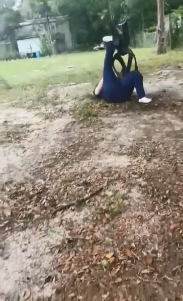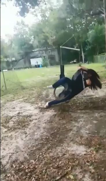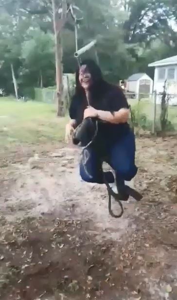 When in Florida, you just do wild shit, it’s law. So. We were hangin’ out, living our best life when I got a little too excited about the horse swing hanging from the tree on the other end of the yard. Mary, the positive adventure seeker she is, encouraged me to get on, and enjoy it. Probably because I’m runnin’ my mouth like an idiot, “OMG! I always wanted one of these! I wonder what the weight limit on THIS is!”